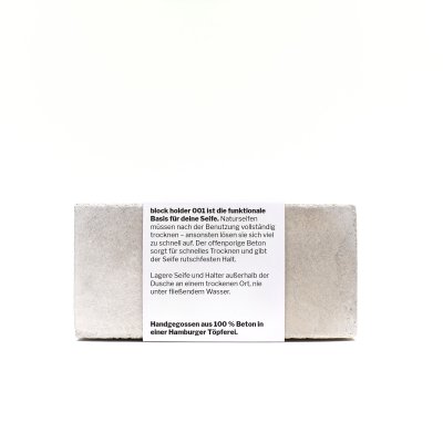 Block holder 001 sorgt dafür, dass deine Seife optimal verstaut ist und nicht durch Staunässe geschädigt wird.