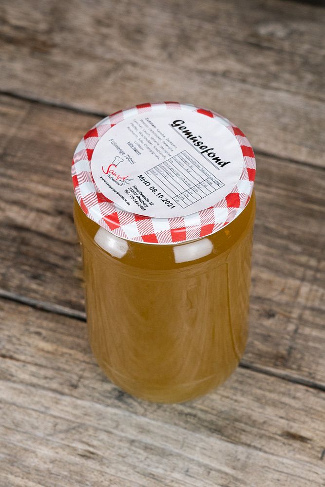 Karotte, Zwiebeln, Wasser, Liebstöckel, Petersilie, Fenchel, Lauch, Sellerie, Steinpilze, Pfeffer, Wacholder, Knoblauch, Rosmarin, Salz, Champignons, Lorbeer