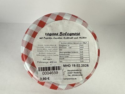 Vegane Bolognese mit Paprika, Zucchini, Kohlrabi und Möhre, nachhaltige Glasverpackung!