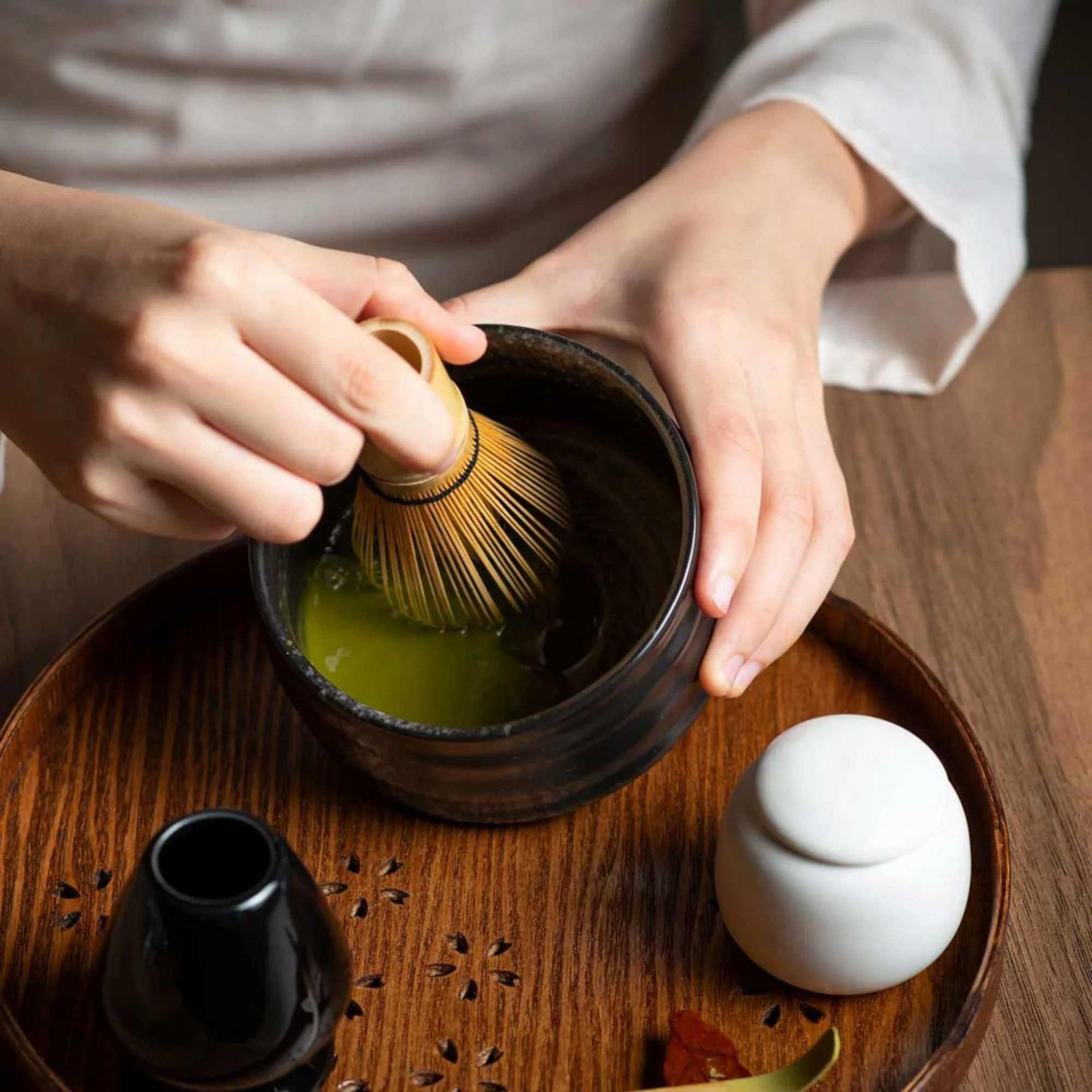 Traditioneller, handgearbeiteter Matcha-Besen aus Bambus. Das perfekte Accessoir zum Aufschäumen unseres Bio-Matchas >>Star Dust<<.