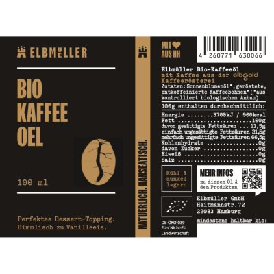 Unsere Kaffeebohnen beziehen wir ausschließlich von der Elbgold-Rösterei in Hamburg. Unser Bio-Kaffeeöl kann sowohl in der kalten, als auch in der warmen Küche eingesetzt werden.