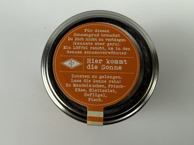 Die hier zum Einsatz kommenden Früchte werden vollreif geerntet, schonend verarbeitet und geben diesem Senf, verfeinert mit Orangenschale und Gewürzen, eine wundervoll süßfruchtige Note. In Brandenburg geernteter Blaumohn wird von uns schonend geröstet und rundet diese Senfkomposition mit einer nussigen Note ab.