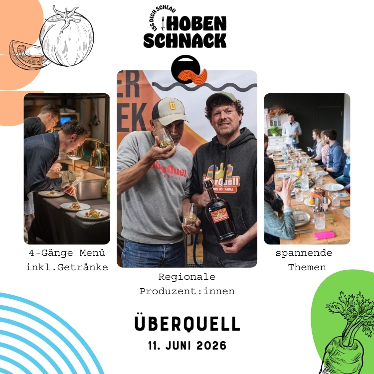 Echtes Bier aus St. Pauli, von Hamburg für Hamburg! So bunt wie der Look vom Überquell (ob da wohl wer mal Surfer war?), so kreativ sind auch die Ideen des Brauer-Teams für neue Biersorten. Mit einer Microbrauerei, die Mensch begehen kann und so dem Prozess der Bierentstehung erfahren kann, einem Restaurant und einer größeren Brauerei für Flaschenbiere hat sich aus dem Unternehmen eine echte Marke entwickelt. Als Vorreiter der Individualgastronomie sind Axel Ohm und Patrick Rüther ein spannendes Duo, welches uns diesen Hobenschnack tiefe Einblicke rund um Bier und nicht ganz gerade, dafür umso tollere Lebenswege zaubern wird!