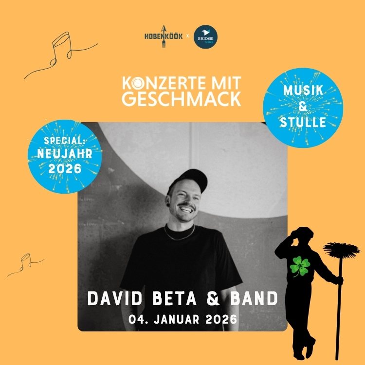 Zum Konzert gibt es leckere Bowls und Vitalsnacks (im Ticketpreis enthalten). Aber natürlich bekommt ihr wie gewohnt auch andere Getränke an der Hobenköök-Bar. Bridge Gigs und das Restaurant-Team freuen sich auf euch!